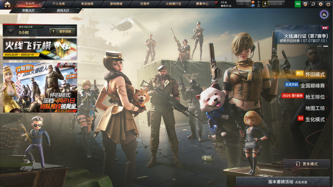 CFer可以通过主界面右侧的怀旧模式按钮或左上角的旧版大厅进入怀旧模式频道。